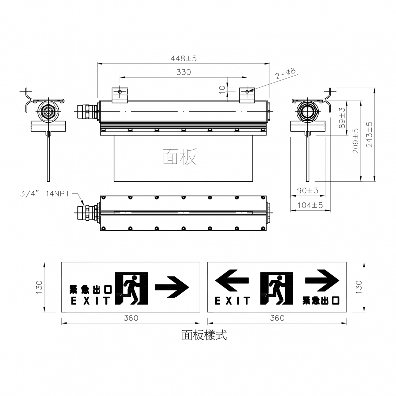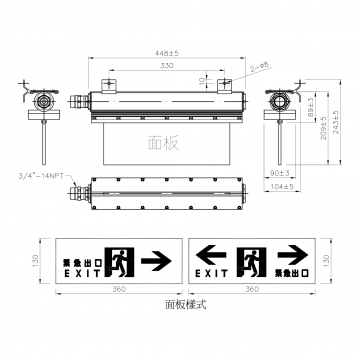 Ex d,(雙面單向)/(雙面雙向)/(左向)/(右向)/(單面雙向),LED 3W*1/16W*1,AC110/220V,Ex d IIB+H2 T6 Gb X,Ex tb IIIC T85℃ Db X