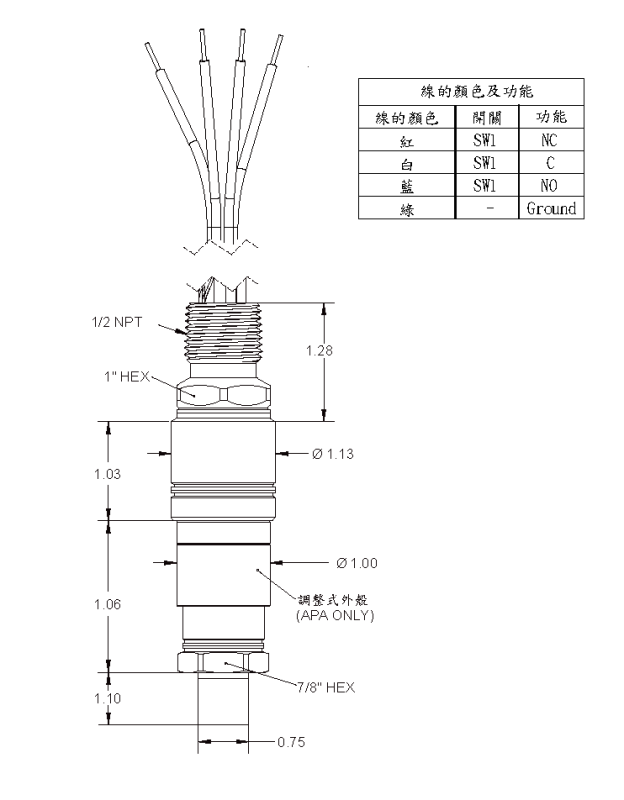 電氣輸出:DPDT 5A or 3A 120VAC,2A@30 VDC, 5A@28 VAC,gold contacts acailable(黃金接點)。