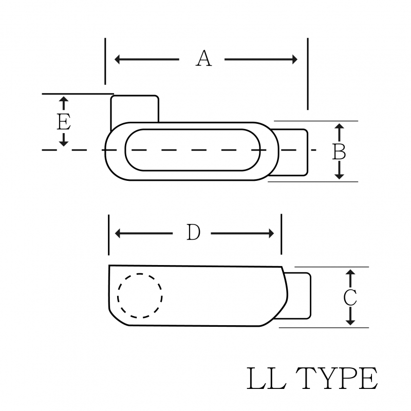 | LL型電管穿線匣 1-1/2" | 240 | 70 | 68 | 186 | 67 |