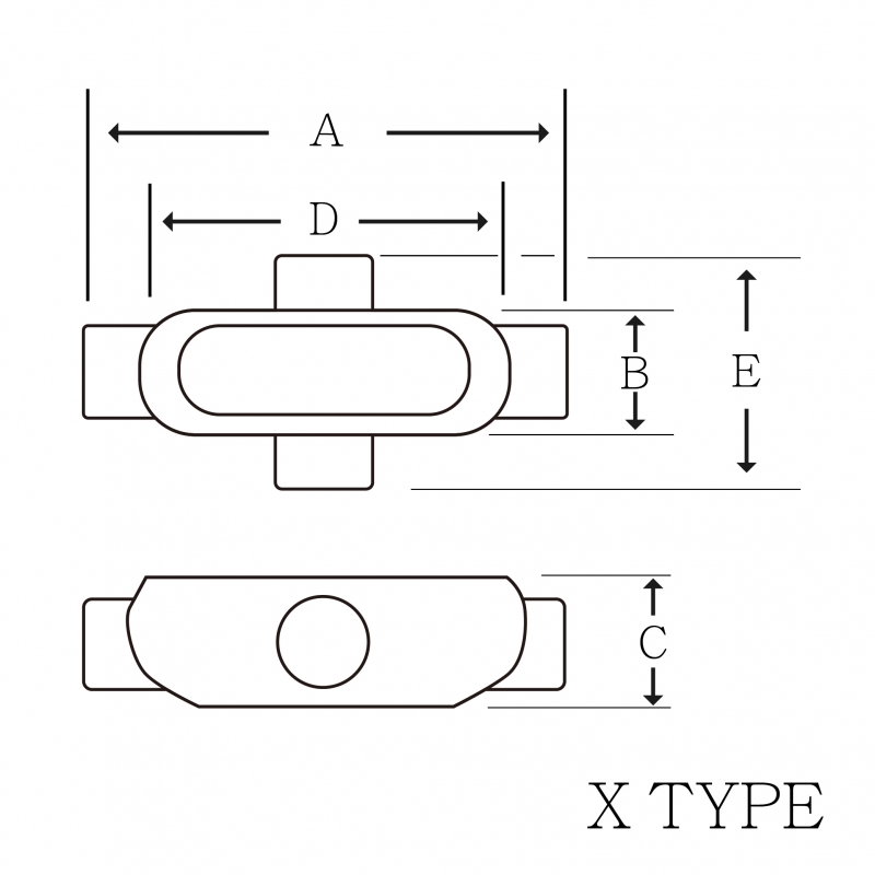| X型電管穿線匣 1/2" | 145 | 38 | 38 | 107 | 39 |