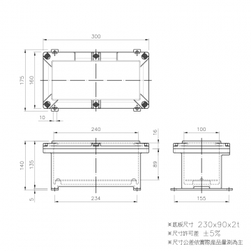 | 外型尺寸(mm) | L(圖A) 300 W(圖B) 160 H(圖C) 140 |