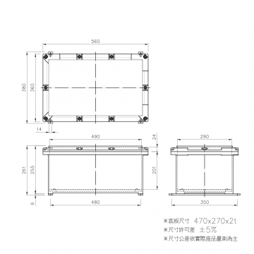 | 外型尺寸(mm) | L(圖A) 560 W(圖B) 360 H(圖C) 261 |