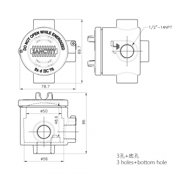 Ex d ,1/2",3孔+底孔(不銹鋼)φ56*89.7*86,Ex d IIC T6 Gb,Ex tb IIIC T85℃ Db